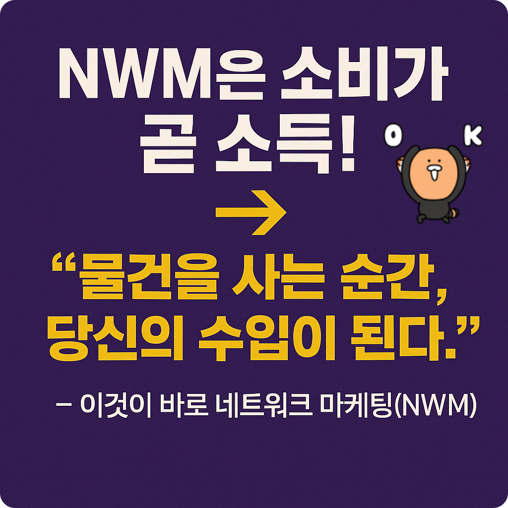 검증이 끝났다면 선진유통인 NWM에 대한 잘못된 선입견·편견·오만·오해를 제발 걷어내고, 점점 사라지는 직장을 찾기보다는 평생직업을 갖기 위해 NWM 회사를 선별할 수 있는 넓은 혜안과 참여로 진정한 사업영역으로서의 포트폴리오를 구성하고 미래를 위한 현명한 소비로 소득을 만드는 생산적 활동을 취해야 할 것이다.ㅡ